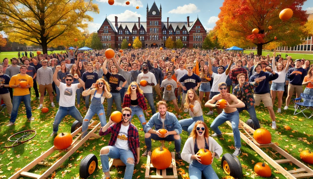 Life on campus is one the best things ever done by humans. There are dining halls with unlimited food fights, but also a No Food Fights clean room. The quad is full of amazing ideas and artists and colorful locals. And, best of all, we have the best uniforms of all the colleges. Our uniforms are mandatory and great!